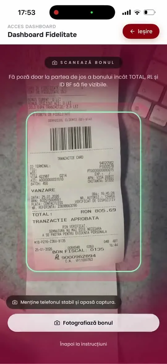 Romanian retail needed loyalty that doesn't disrupt operations. We built a receipt-intelligence system that awards points automatically, powered by custom ML models trained on thousands of Romanian fiscal receipts.